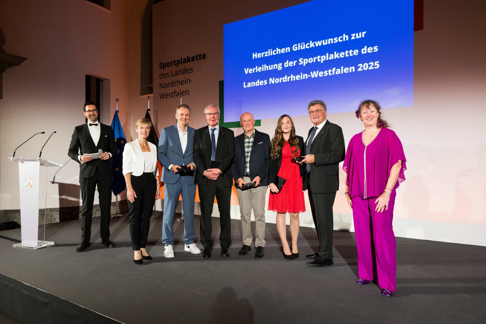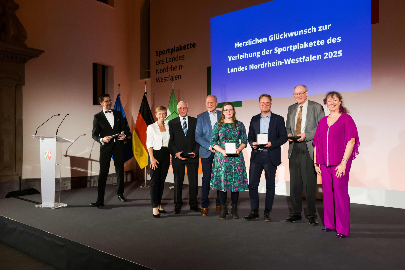 Die Sportplakette ist die höchste Auszeichnung, die das Land NRW für herausragendes Engagement im Sport vergibt. Seit der Gründung 1959 wurden knapp 1.000 ehrenamtlich Engagierte, Sportlerinnen und Sportler sowie drei Mannschaften mit der Sportplakette des Landes ausgezeichnet. Die NRW-Staatsekretärin für Sport und Ehrenamt, Andrea Milz, und die Vize-Präsidenten Breitensport des LSB NRW, Dr. Eva Selic, würdigten gemeinsam insgesamt 20 Bürgerinnen und Bürger, die sich nachhaltig um den nordrhein-westfälischen Sport verdient gemacht haben.
