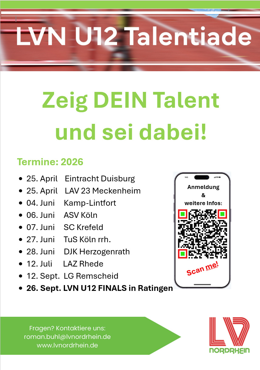 Wir wünschen allen Athleten und Athletinnen gute und spannende Wettkämpfe bei den LVN U12 Talentiaden 2026!
