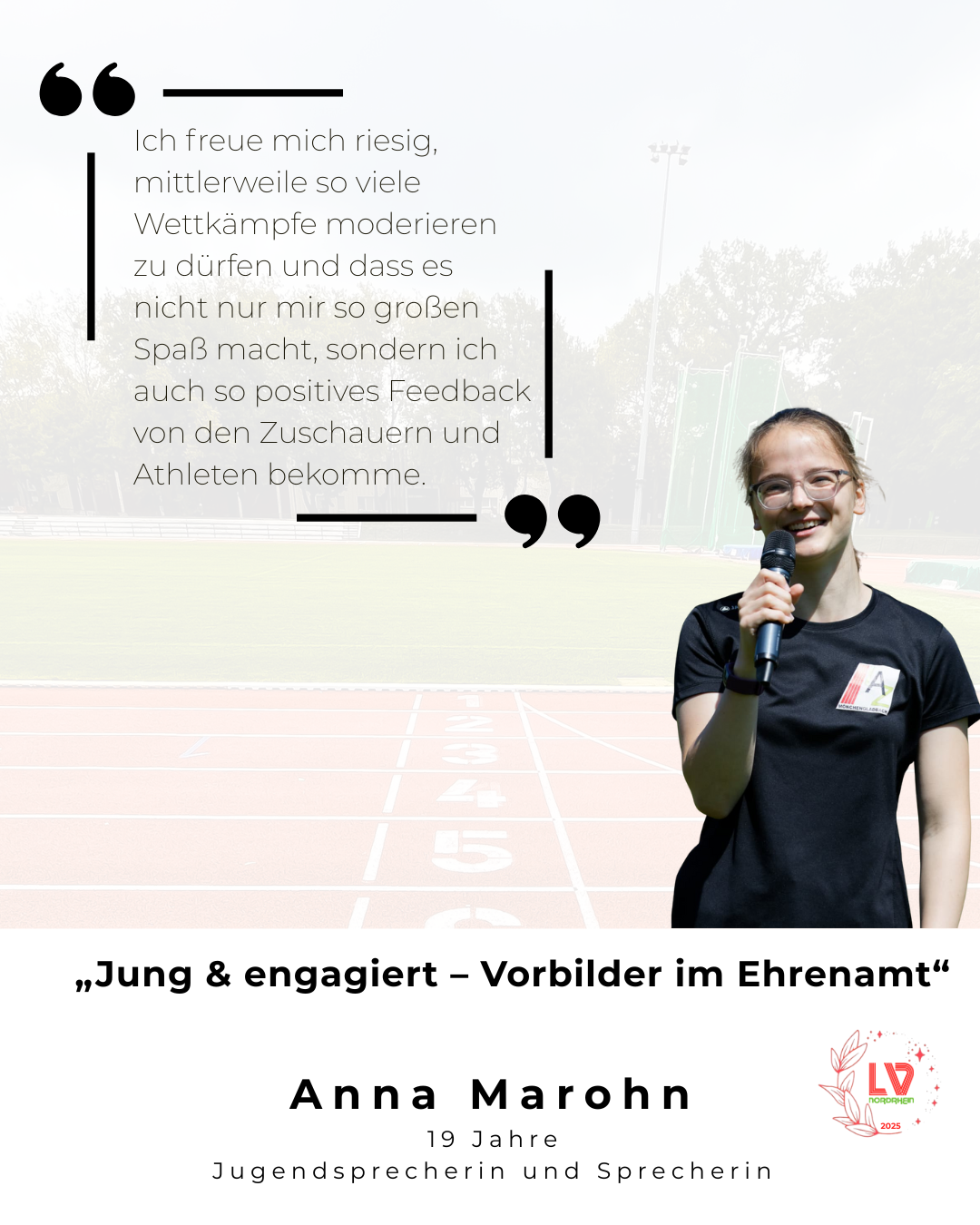 Aus einigen eingegangenen Nominierungen wurden diese drei „Vorbilder im Ehrenamt“ ausgewählt, die mit ihrem Einsatz zeigen, wie wichtig engagierte Jugendliche für die Leichtathletik im LVN sind. Alle drei haben ein Ehrungspaket erhalten und werden im Laufe der nächsten Tages auf unserem Instagram-Kanal lvnordrhein genauer vorgestellt.